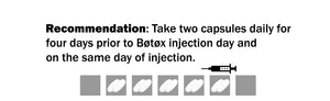 Take two capsules daily for four days prior to Bøtøx injection day and on the same day of injection. Each package contains only ten tablets.
