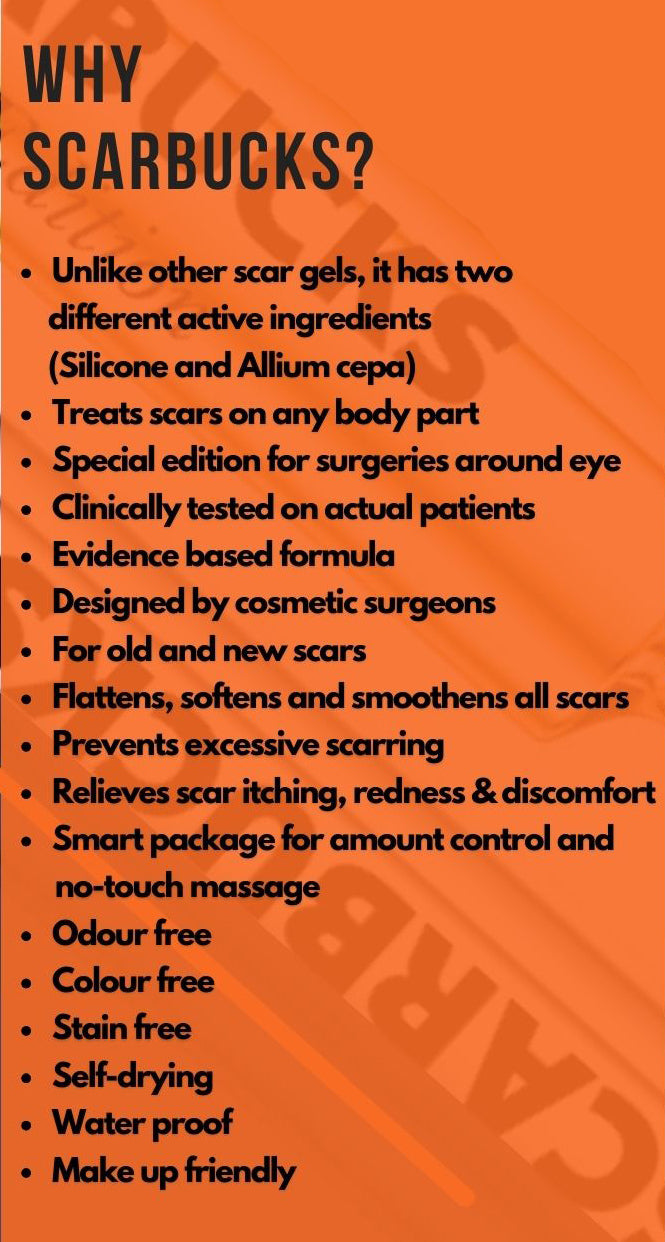 Six 10ml Scarbucks (eye edition) Will cover you for the first six months after eyelid surgery. The golden window to change your scars is the first six month after surgery. A Unique...